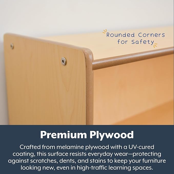 - STURDY AND DURABLE: This kids bookshelf organizer is constructed from melamine laminate panels and features a tough UV finish to be extremely scratch and stain resistant