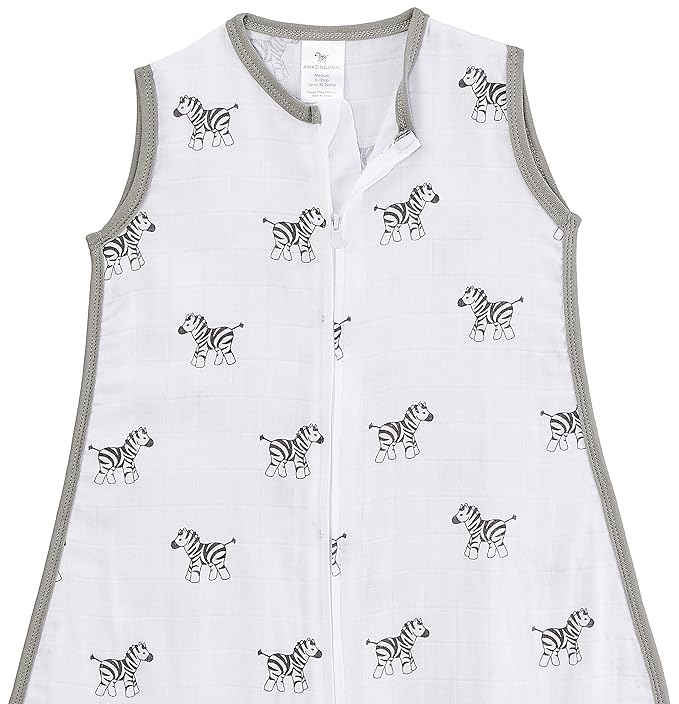 Amazing Baby Cotton Muslin Sleeping Sack, For Baby Boy or Girl, Wearable Blanket with 2-way Zipper, Zebras, Black, Medium (6-12 Month)