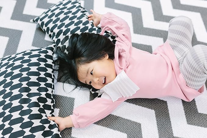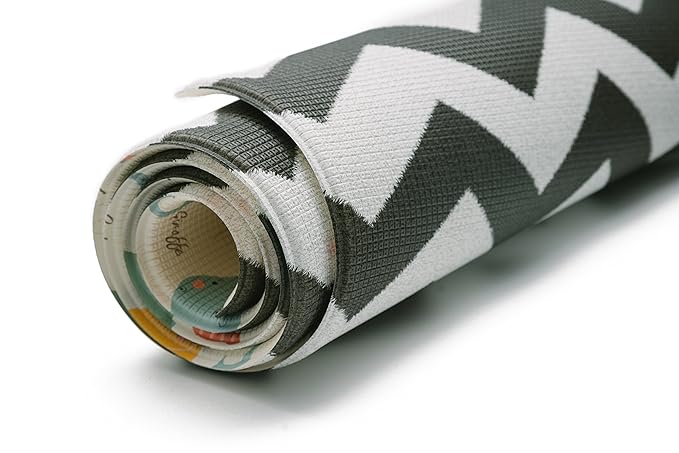 Baby Care Play Mat (Large, Zig Zag - Black) 82'' x 55'' Original One-Piece Reversible Rollable Waterproof Play Mat for Infants, Babies, Toddler, and Kids