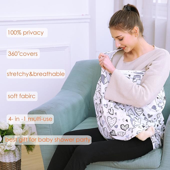 - Breastfeeding and soft, made of Spandex Mix Polyester, fits most car seats and nursing mothers, high chair and shopping cart.