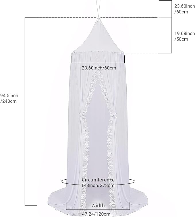 - SPACIOUS SANCTUARY FOR DREAMS – Total height 98.4 inch; upper part length 19.69 inch. Crafted to fit various bed sizes from baby cribs, twin size to queen beds, our canopy offers ample room for play, reading, and sleeping. Made from premium polyester, it creates a cozy, light-blocked, and pest-free environment. Ideal for babies, girls, kids, and toddlers.
