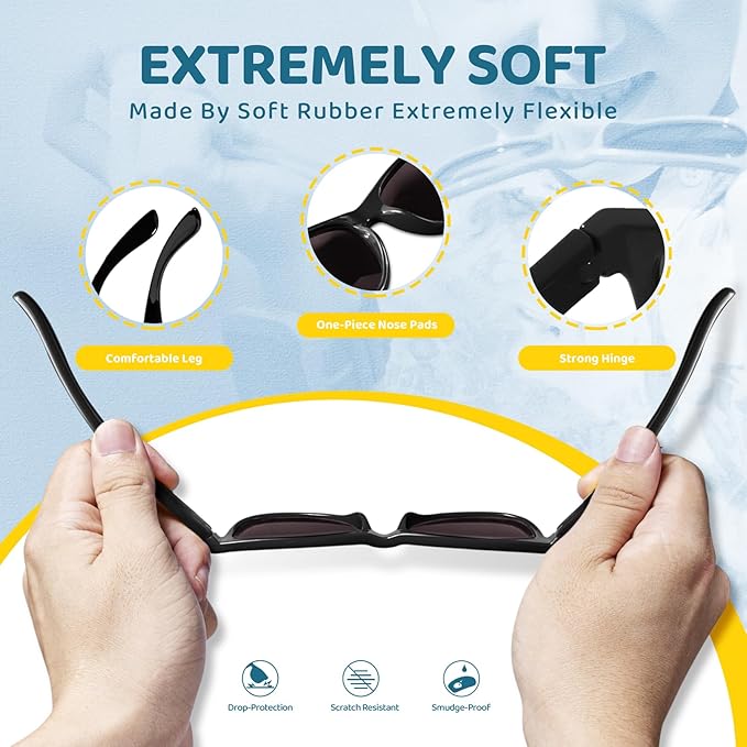 - SAFE AND COMFORTABL - RIVBOS sunglasses frame is made of soft silicone and unbreakable material, which is not easy to break, very durable, and also provides a comfortable wearing experience.