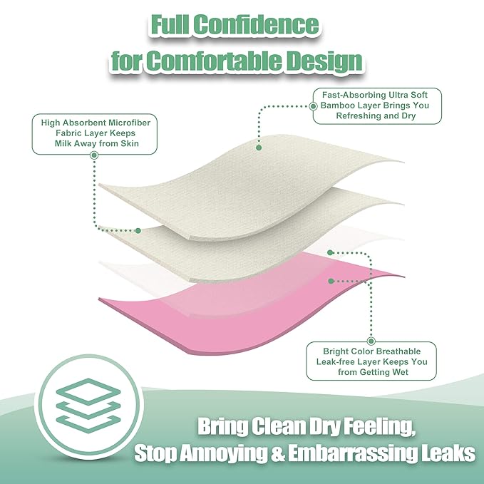 - Absorbent Middle Layer Microfiber provides strong absorbency ensuring no leaking at night; The Outer layer back side TPU lamination can efficiently keep wet away from mama bra or clothes; Nursing pads may not have the leek-free TPU as outer layer; Great for keeping off night time puddles and day time embarrassing leaks