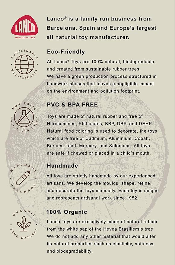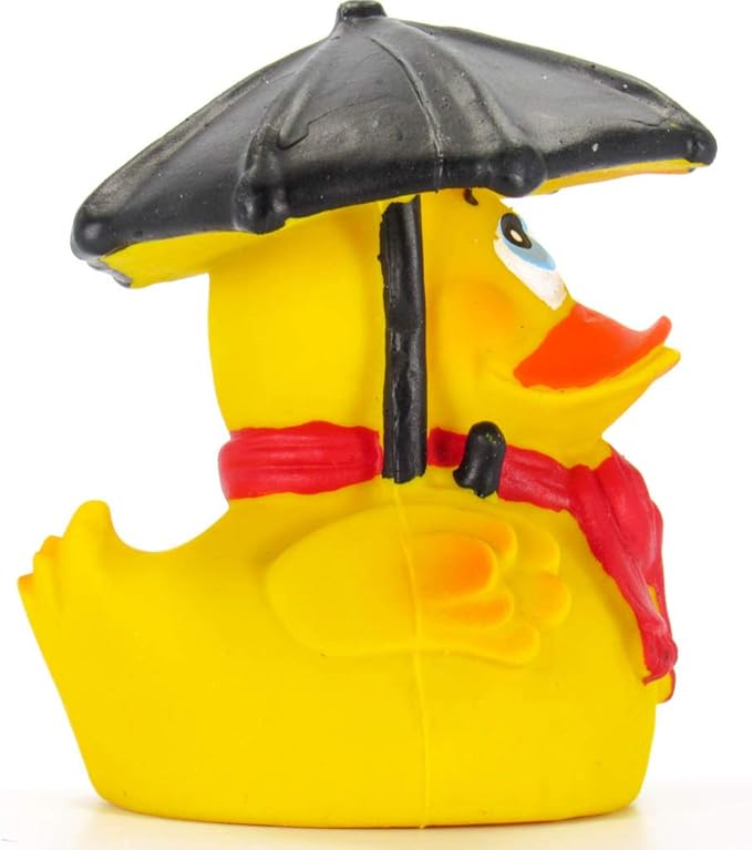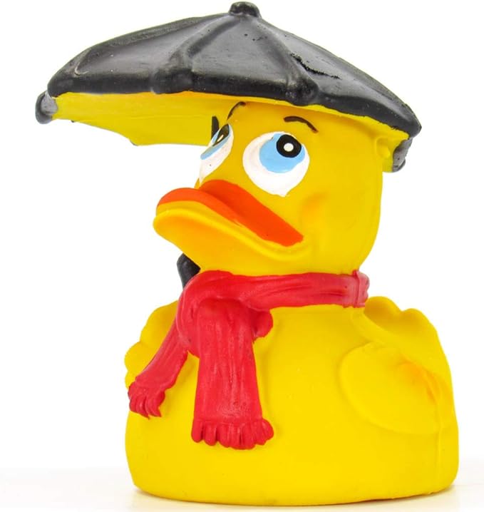 Lanco Umbrella Raining Rubber Duck Bath Toy | All Natural, Organic, Eco Friendly, Squeaker Brand | Imported from Barcelona, Spain