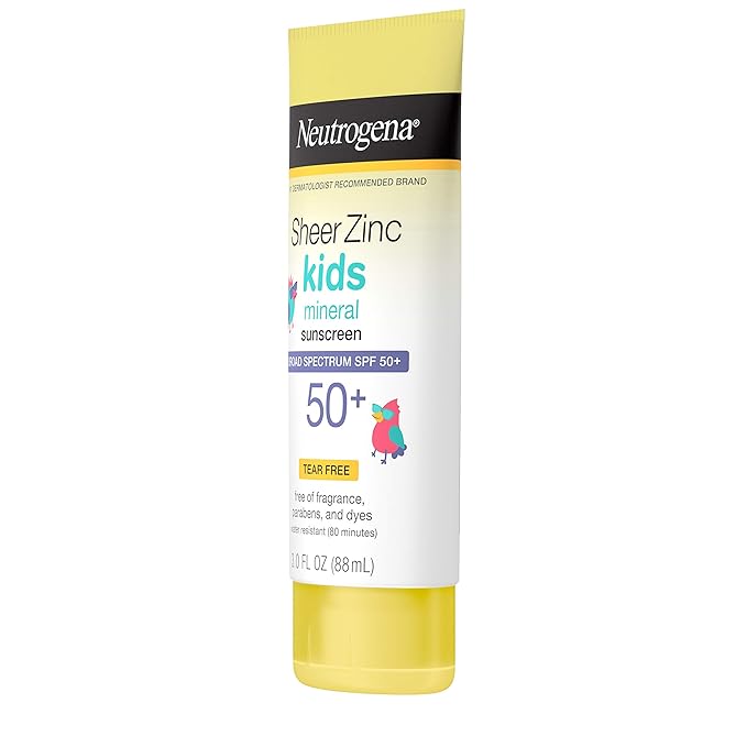 Neutrogena Sheer Zinc Oxide Kids Mineral Sunscreen Lotion, Broad Spectrum SPF 50+ with UVA/UVB Protection, Water-Resistant for 80 Minutes, Paraben-, Dye-, Fragrance- & Tear Free, 3 fl. oz