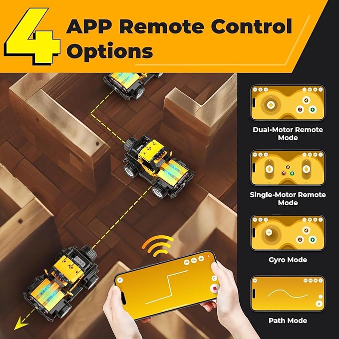 - 4 App Control Modes for Smart Play: Control your robot via Bluetooth with 4 user-friendly modes: dual-motor, single-motor, gyro, and path mode. Download the free Apitor Kit app for step-by-step instructions, and watch your child learn programming and robotics independently!