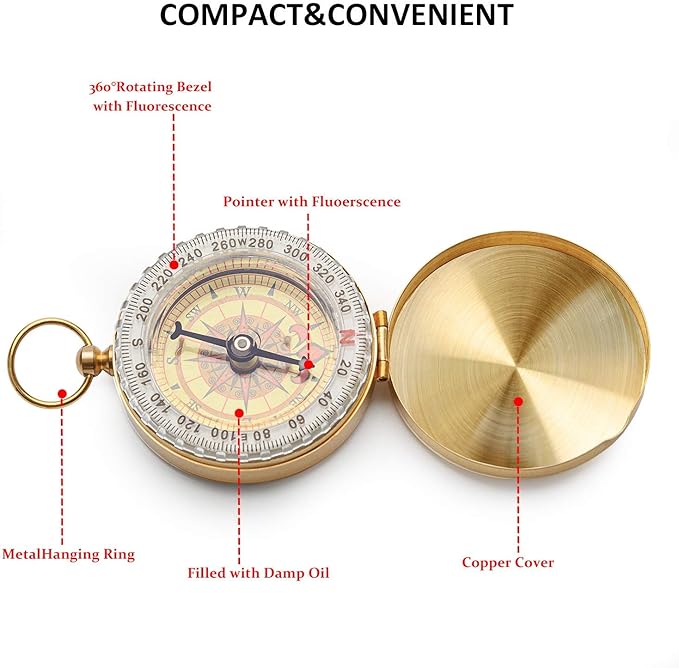 - Durable & Waterproof – Both the spyglass and boat compass are waterproof, so cool for using outdoors! And perfect to be a maritime or pirate collection as well! The ship compass will glow in the dark, which helps you identify the direction even in dark night. It can be used in -20℃ to 50℃ harsh environment. Really resistant!