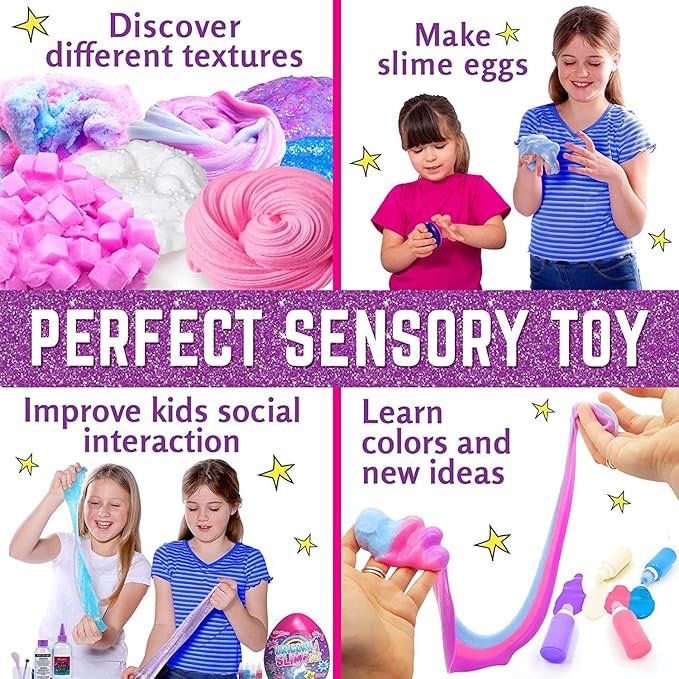 - Perfect for Imaginative Play: Discover endless fun with our slime kits for girls! An ideal sensory toy to explore different textures, learn new colors, and spark creativity by making your own slime eggs