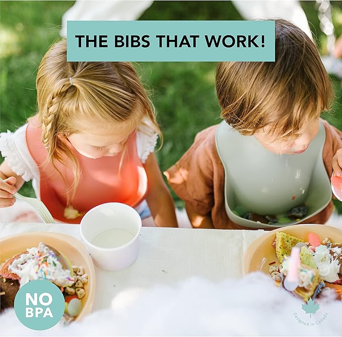 - TRAVEL FRIENDLY AND ADJUSTABLE FIT - Our flexible silicone bib is simple to roll up and pack for on the go! Plus reinforced, durable buttonholes adjust to fit your growing baby, ages 3 - 36 months.