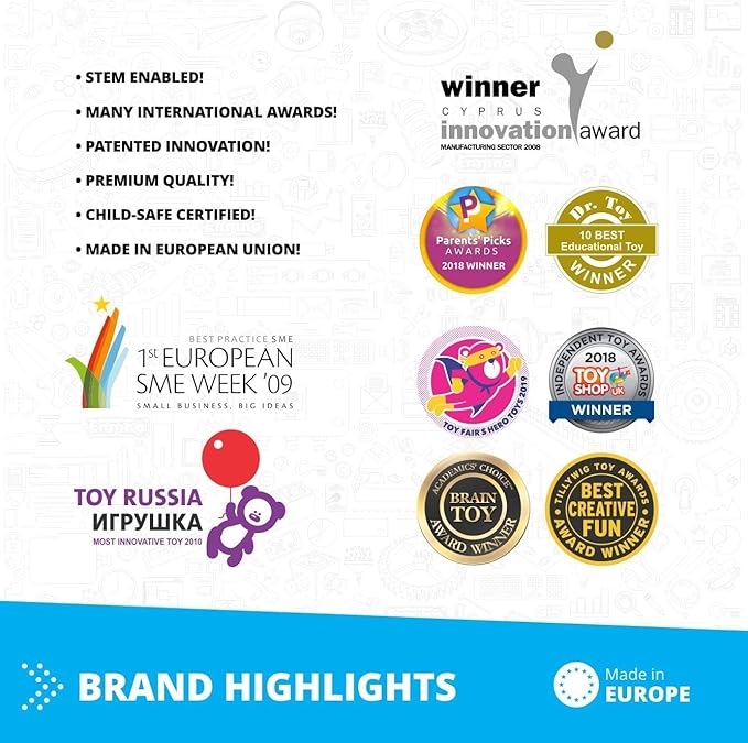 - MADE IN EUROPE: Award-winning engineering toys featuring best-selling models. Watch your child beam with pride while developing creative thinking and engineering skills through proven educational designs.