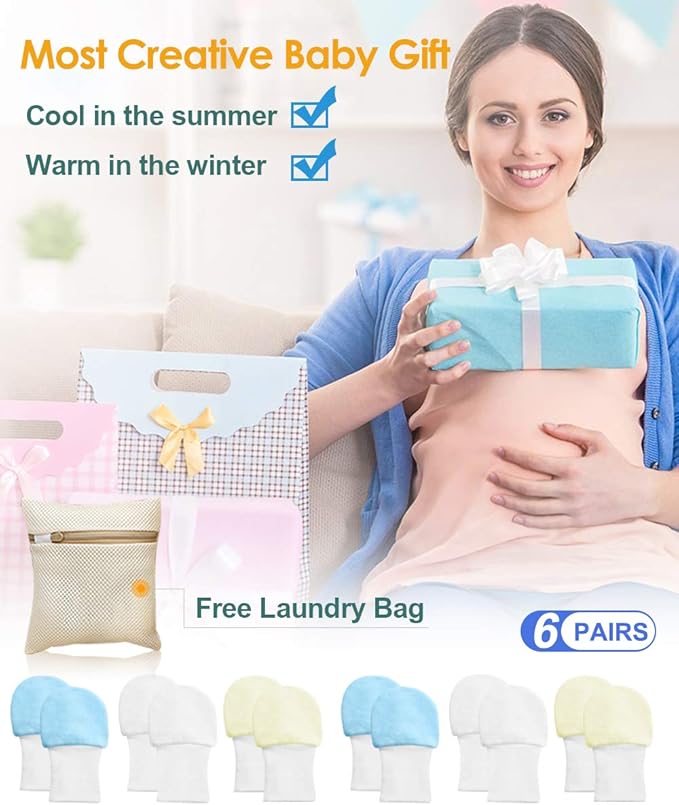 Newborn Baby Mittens Anti Scratch Baby Mittens No Scratch Mittens Baby Gloves for 0-6 Months Boys Girls(6 Pairs)