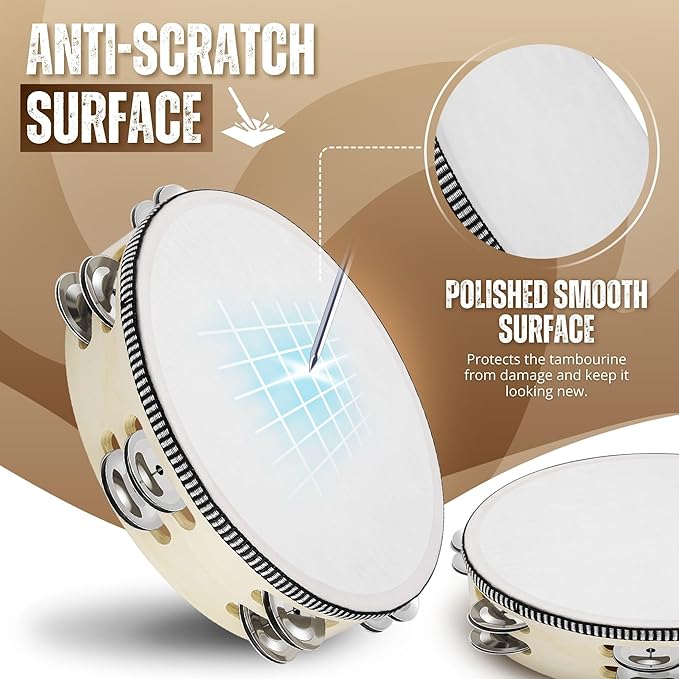 - With 8 pairs jingles for the 6" model and either 12 pairs jingles for the 8" model; which give out a crisp, percussive rhythm