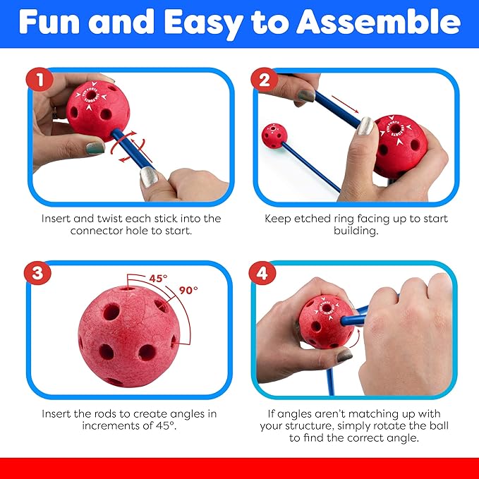 - KID-FRIENDLY CONSTRUCTION TOYS SET: This kids play fort kit is made with kid-safe, BPA-free plastic; includes 15.75” rods and 2.4” balls; these construction fort building toys are perfect for curious-minded kids ages 4 and up