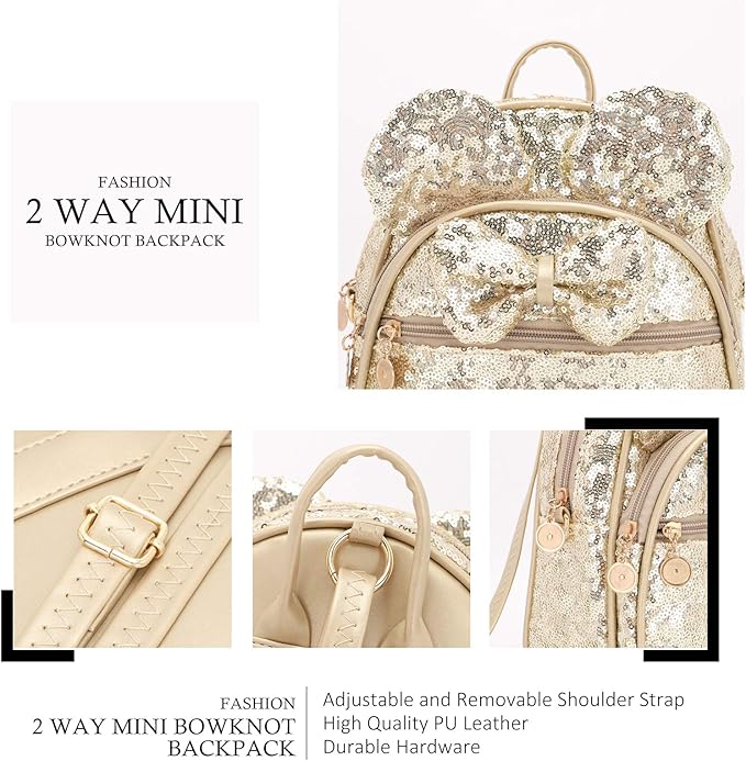 • Capacity: This cute mini backpack both for girls and women, used for daily, shopping, day trips and short travel. It can hold your wallets, keys, cell phones, makeups and other small accessories and stuffs