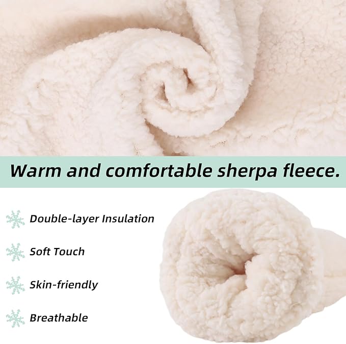 • 【SUPER WARM MATERIAL】: Our baby winter mittens gloves are made of warm fleece and comfortable polyester fiber. Which is super soft, warm and comfortable. Newborn's skin is very sensitive, so we have carefully selected skin-friendly materials, the baby winter mittens are very suitable for your baby.