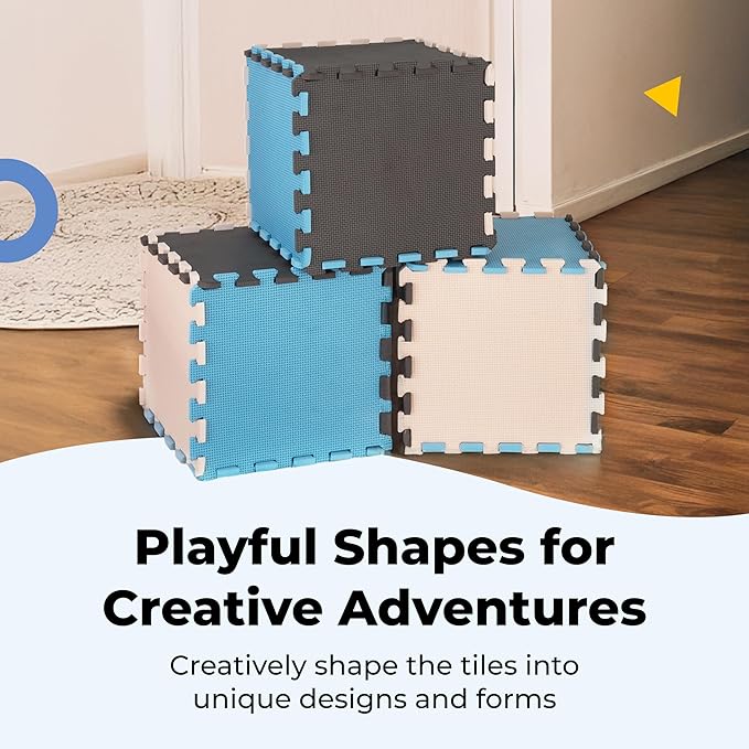 - 😴 EASY-TO-ASSEMBLE INTERLOCKING FOAM TILES: Our 12.4 x 12.4-inch interlocking foam tiles fit securely together, creating a customised play area for any room. Choose from our 16-piece set (covers 16 sq ft) or 36-piece set (covers 36 sq ft), each with matching borders for a polished look.
