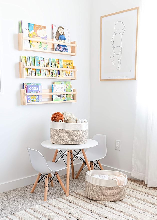 - Discrete, Built-In Carry Handles – These fabric rope baskets for storage also feature slim hand holds built right into the sides of each round basket for a seamless look that’s also functional. Perfect for picking up toys or carrying items around the house.
