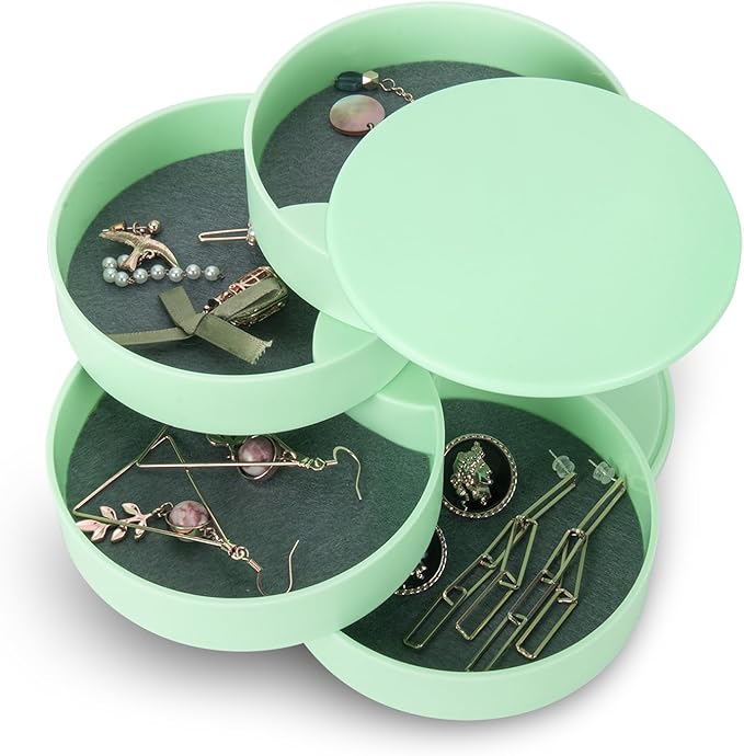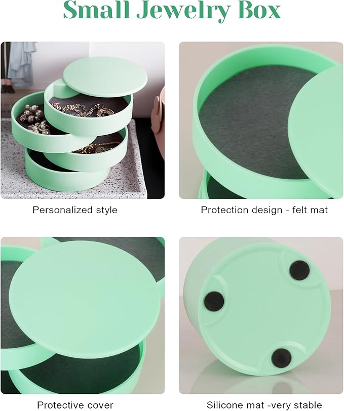 CONBOLA Jewelry Organizer, Small Jewelry Storage Box Earring Holder for Women, 4-Layer Rotating Travel Jewelry Tray Case with Lid for Bracelets Rings Bracelets