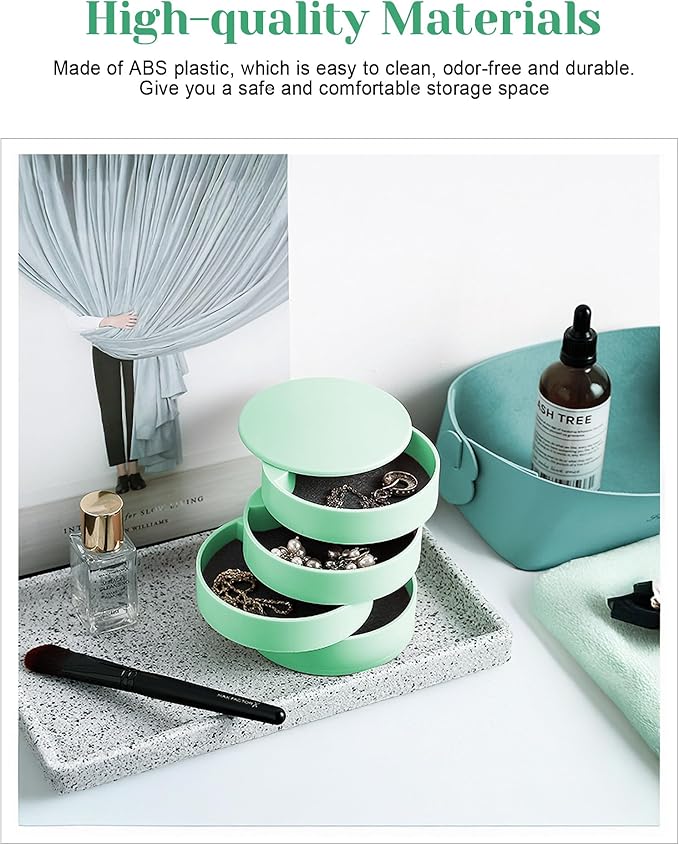 - ♥【Rotating Jewelry Organizer】- Simple and modern style, rotate into any look you like, excellent dressing table decor; it's a compact cylinder when closed, and isolate dust to better maintain the luster of jewelry.