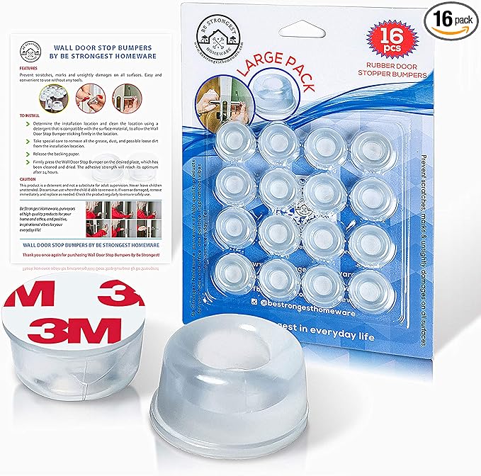 - SOLVE YOUR CRASHING DOORKNOB PROBLEM: We’re confident that door stoppers will solve your crashing doorknob problem. If you’re not 100% thrilled with how the small door handle bumper works to protect your walls, let us know and we make it right! No doubt you can think of many situations where a headboard stopper or door protector like this could be a lifesaver. Click Buy Now, and we’ll send you 16 of these clear, self-adhesive, simple-setup, door stopper rubber bumpers today!