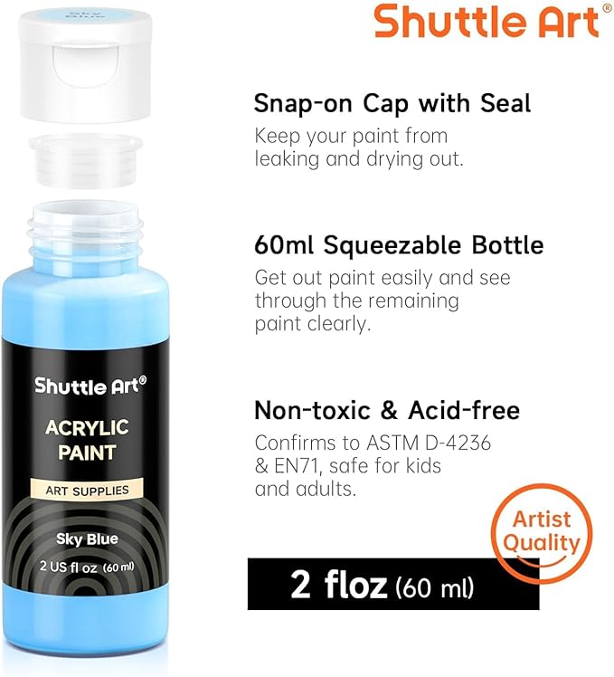Shuttle Art Acrylic Paint, 25 Colors Acrylic Paint Set, 2oz/60ml Bottles, Rich Pigments Paint for Artists, Beginners and Kids on Canvas Rocks Wood Ceramic Fabric