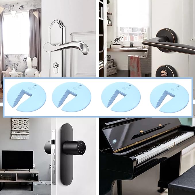 Door Pinch Guard and Door Slam Stopper, Durable Silicone Door Finger Pinch Guard, Prevents Finger Pinch Injuries, Slamming Doors, Door Safety for Kids, 4 Packs Blue Basic.