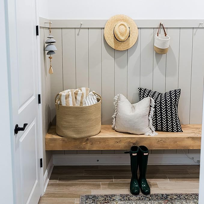 - Beautiful Addition to Your Boho Decor: Elevate your living room decor with this handwoven blanket basket. Neutral tones and minimalist design create a cozy, stylish vibe, perfect for farmhouse, Scandinavian, or boho decor aesthetics.