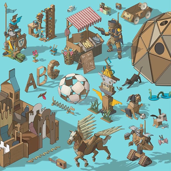 - CREATING IS SIMPLE: This is pure, no-tech (but tech-friendly*) fun for girls and boys. * incorporate other tech maker products to add movement and light to your creations. Simple and safe, cardboard construction has never been this easy.