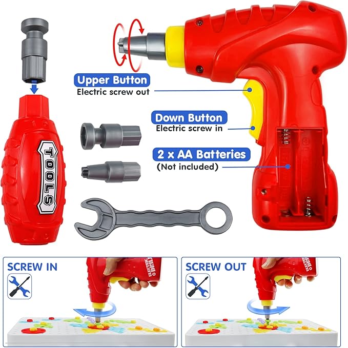 - Design And Drill: There are infinite combinations of 1D 2D and 3D buildings! Improve your kids' imagination and creativity by challenging them to build their own cars, animals, robots and anything they can imagine. We also provide you with more tools than other sets: a wrench, a manual screwdriver and an electric screwdriver so more of your kids can play at the same time.