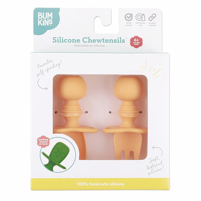- GENTLE ON GUMS – Textured silicone is not only easy-to-grip, but soft and gentle on gums; Chewtensils can be chewed by teething babies; the back of the spoon head has sensory bumps to stimulate gums