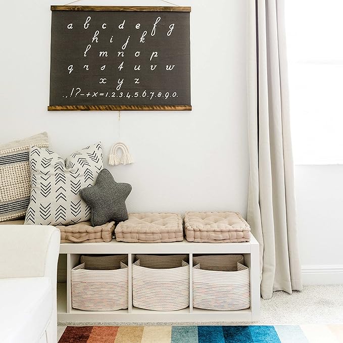 OrganiHaus Set of 3 Rainbow Stiches Woven Storage Baskets for Organizing, Cotton Rope Storage Baskets for Shelves, Soft Bathroom Bins for Organizing, Decorative Cute Nursery Bins for Toys