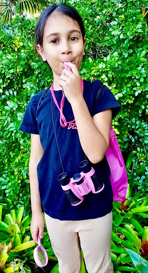 - 🔍LARGE MAGNIFYING GLASS - 3 x magnification for examining plants, insects and rocks. Wonderfully fun for camping trips and outdoor or indoor investigations. SAFE Non Choking pealess FOX WHISTLE - great for hiking, scouting, sports, games and safety locator. Clip on thick lanyard to be worn around the neck for quick access for signaling location or emergency use.