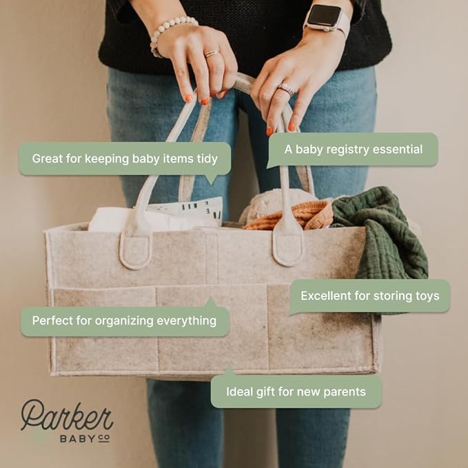 - QUALITY AND SATISFACTION GUARANTEE: Crafted from soft felt, our diaper caddy is built to last. The high-quality materials ensure durability and easy maintenance. We stand behind the product with a satisfaction guarantee, making your purchase risk-free. Elevate your diaper organization with the Parker Baby Diaper Caddy – the ultimate diaper bag essential and nursery organizer.