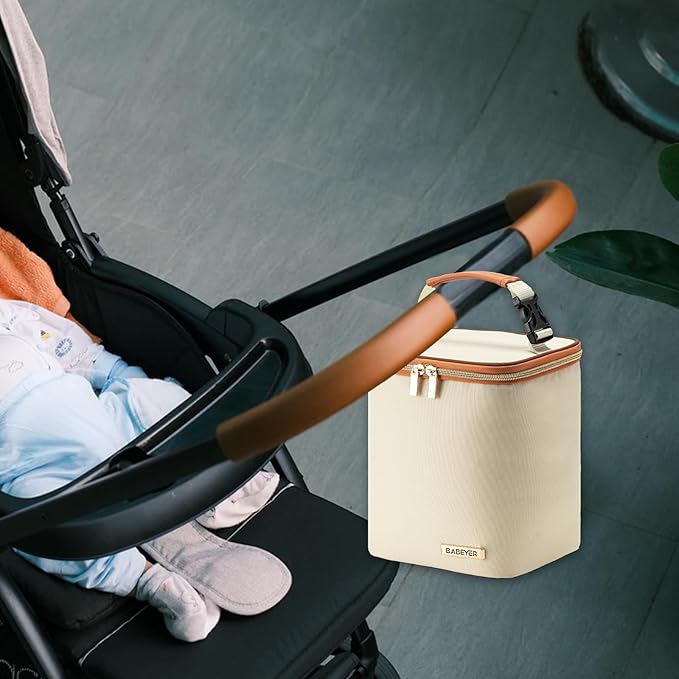 - High Quality:BABEYER Baby bottle bag is made of high Polyester dirt-proof fabric, and durable smooth mental zipper. The lining of the cooler bottle bag are waterproof and wipeable. The side pocket can put some useful items, like phones, keys and so on