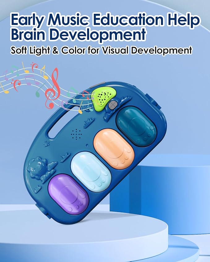 dearlomum Baby Play Mat Gym, Funny Play Piano Tummy Time Activity Mat with 5 Infant Sensory Toys, Music and Lights, Boy & Girl Gifts for Newborns 0 to 3 6 9 12 Months (Blue)
