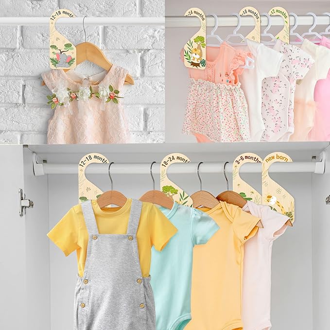 - Adorable & Exquisite Design - Each nursery closet divider are double-printed with cute animal(lion, giraffe, elephant, monkey, hippopotamus, tiger, cow) and exquisite fonts. Not only could be a good helper for arranging clothes, but also as a pretty nursery room decor.