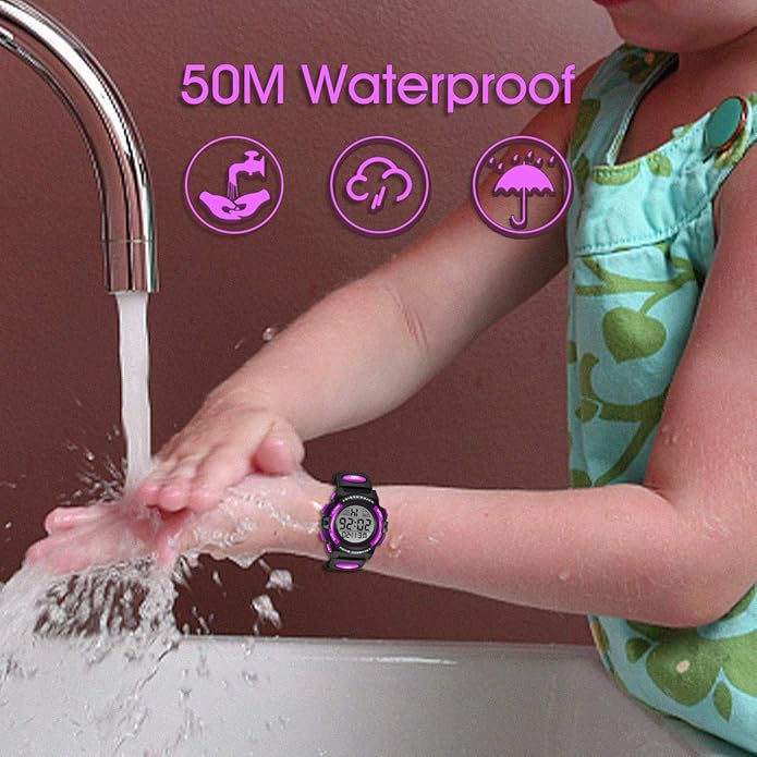 • 50M Waterproof Resistant: It has 50m(5ATM/150FT) waterproof performance, children wearing this waterproof watch can be splashproof and rainproof outdoors or playing, happy and free. Be careful the watches for kids not to operate the buttons in sauna, bathing, or diving.