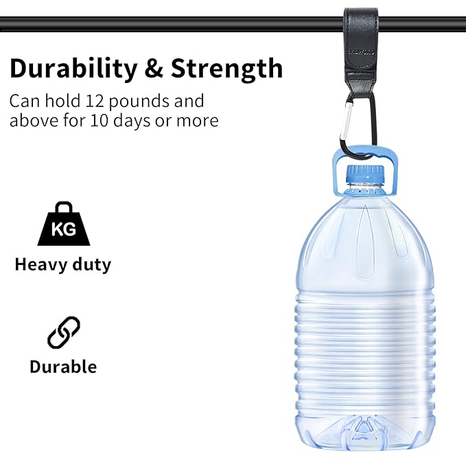 - ❤️👶【Premium Materials】Stroller hook made of sturdy & durable faux leather and velcro, large matte black carabiner can handle over 12 lbs with ease, and can hang multiple bags at the same time. This mom hook for stroller is a must have for closer bonding experience with your baby.