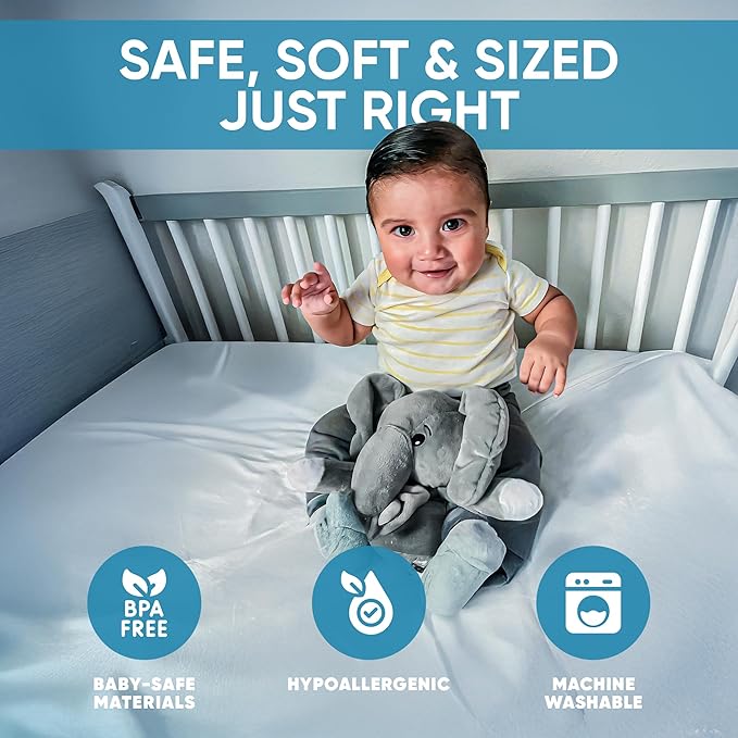 - White Noise with Heartbeat and Lullaby Options: Designed for convenience, this Elephant baby sleep toy features in-ear buttons to play heartbeat sounds or lullabies and bedtime. Choose from two timer lengths (20 or 40 minutes) and volume settings. The built-in sound machine helps ease babies into rest by creating a soothing environment, ideal for naptime, bedtime, and travel.