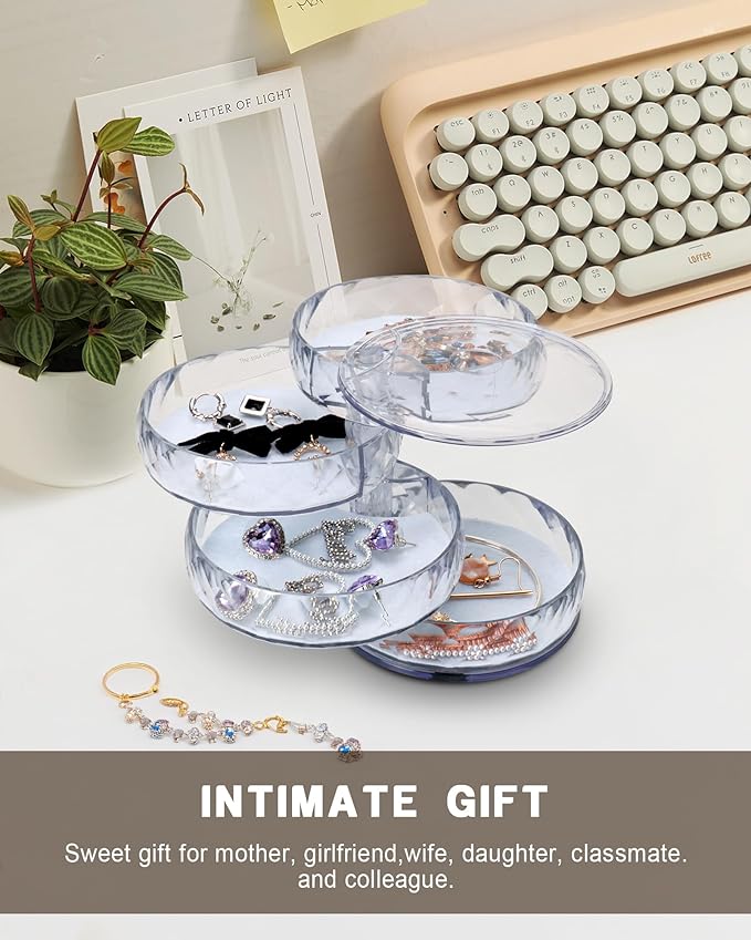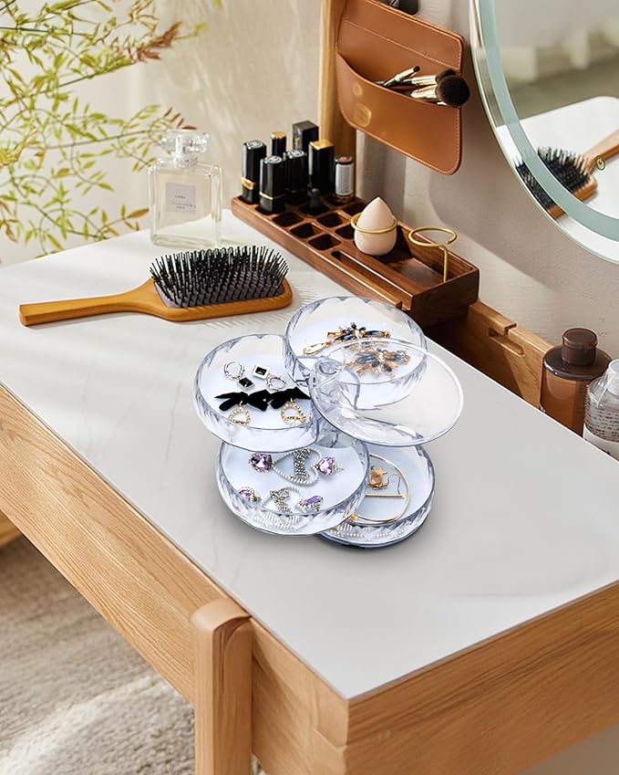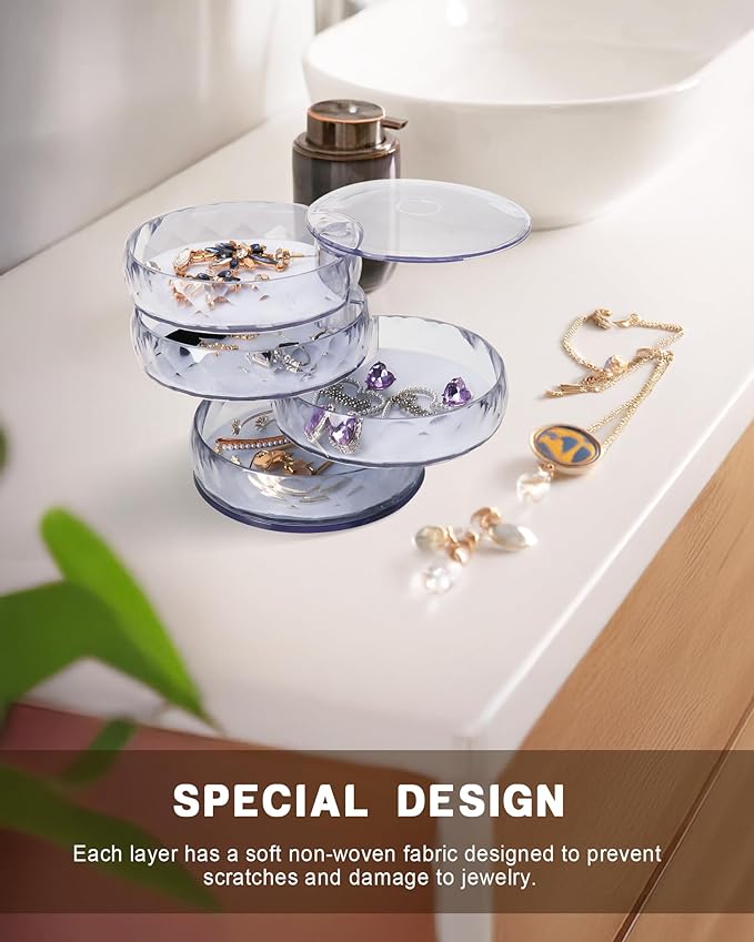 - ♥【Rotating Jewelry Organizer】- Simple and modern style, rotate into any look you like, excellent dressing table decor; it's a compact cylinder when closed, and isolate dust to better maintain the luster of jewelry.