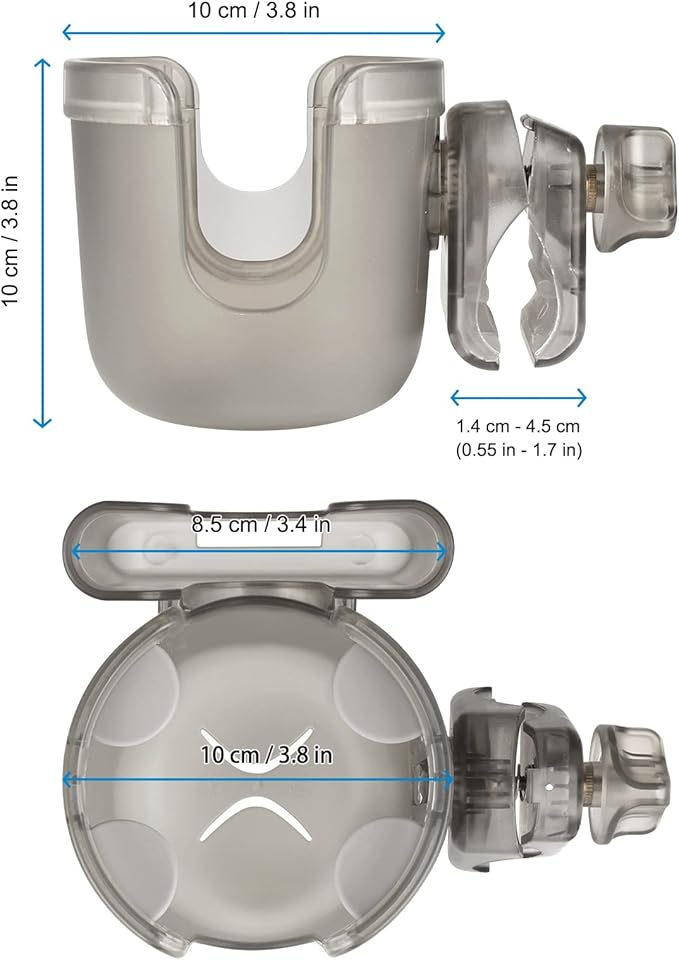 - Wide Compatibility: This universal cup holder with phone holder compatible with most baby strollers, walker, wheelchair, rollator, bike, scooter, boat handle bar, shopping cart, kayak, ATV, lawnmowers, motorcycle, treadmill, golf push cart and so on.