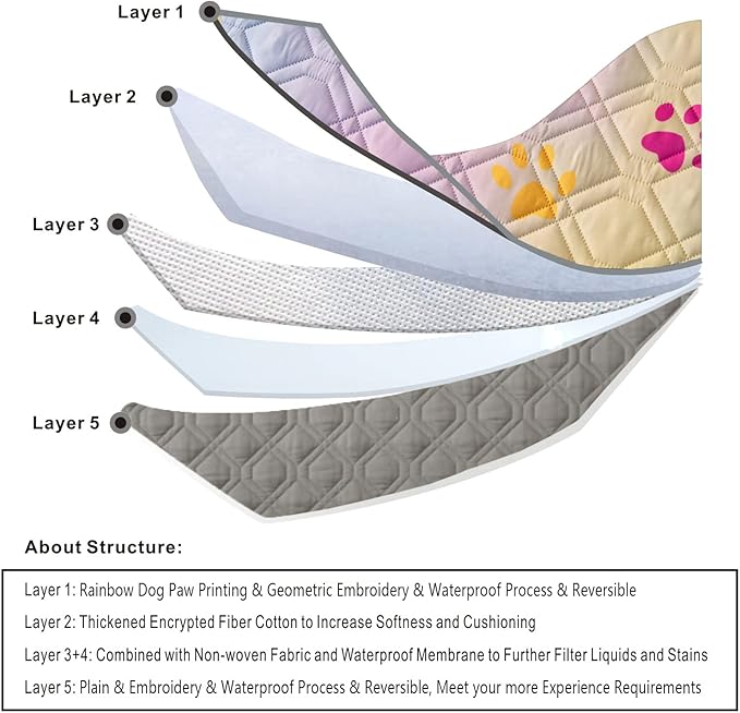 - Made with 5-layer composite coating for waterproof, reversible, reusable, machine washable dog bed cover