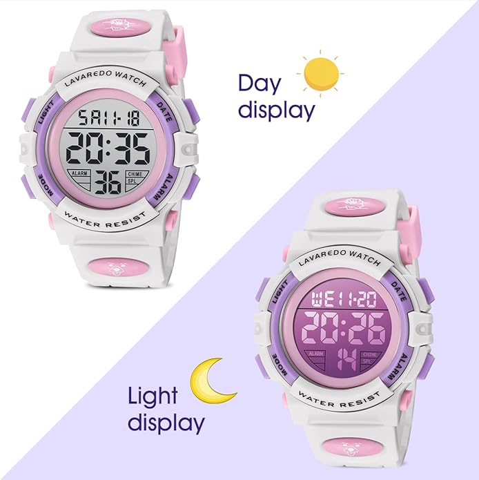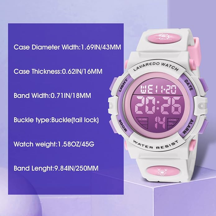 - 50M Waterproof Resistant: It has 50m(5ATM/150FT) waterproof performance, children wearing this waterproof watch can be splashproof and rainproof outdoors or playing, happy and free. Be careful the watches for kids not to operate the buttons in sauna, bathing, or diving.