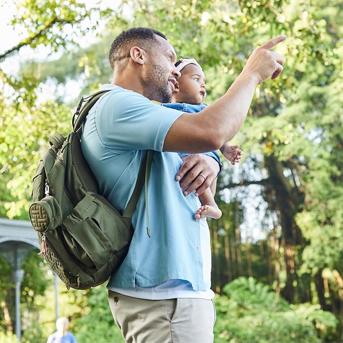 - Convenient & Thoughtful - Cushioned shoulder straps, easy-grab top handle, and convenient stroller clips allow you to use this diaper bag as a travel essentials backpack, a handbag or attach to your stroller.