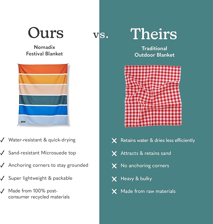 Nomadix Festival Blanket - Perfect for Picnics, Camping, & Lawn Seating - Plush Top & Water Resistant Base - Made with Post Consumer Recycled Materials - Stripes Retro - 60:x 70"