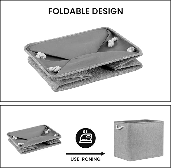 - [Foldable Baskets Set] Simply fold the canvas basket down flat for space-saving storage when not in use or when needing to transport. The basket stays filled for a while and then stays standing. If you mind the creases, you can use an iron to iron the creases in the basket. If you do not use an iron, the creases will slowly disappear as you store your items.