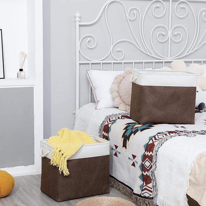 - [Multipurpose Storage] These large linen storage baskets for organizing provide an efficient solution in your home, office or travel to meet many storage needs such as organizing clothes, towels, blankets, toys, baby products, pet products, magazines, newspapers, camping tools, etc. Its storage capacity can keep the family tidy and beautiful, shelf baskets for organizing closet are a wonderful choice