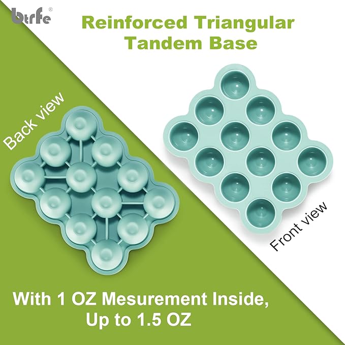 - [Twelve 1.5 oz. portions]: Each 1.5oz section has a 1 ounce capacity marker. Freeze full meals and smaller snacks, or mix to match with a variety of baby's favorite foods, to meet baby's growing nutritional needs.
