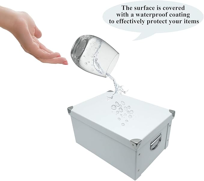 GUOZI Collapsible Storage Box, Decorative Memory Box with Lid & Metal Reinforced Corners, Cardboard File Bin with Handles, Organizer Gift Box for Keepsake Toy Photos Office Nursery Wardrobe Bookshelf