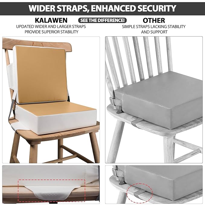 Kalawen Upgraded 2Pcs PU Washable Straps Safety Buckle Toddler Booster Seat for Kitchen Chair, Portable Travel